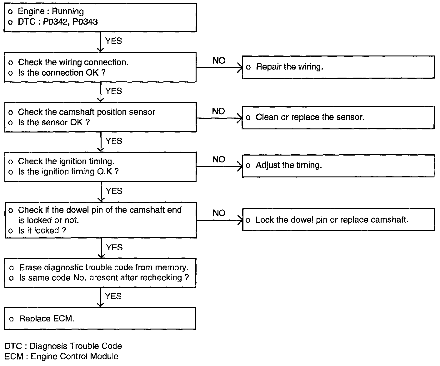 1. If the camshaft position sensor does not operate correctly, correct sequential injection does not occur so the engine may stall or run irregularly at idle or fail to accelerate normally.