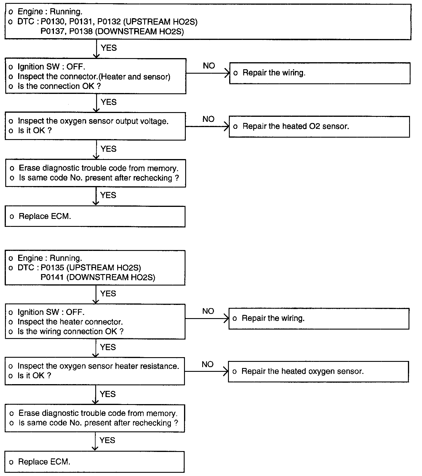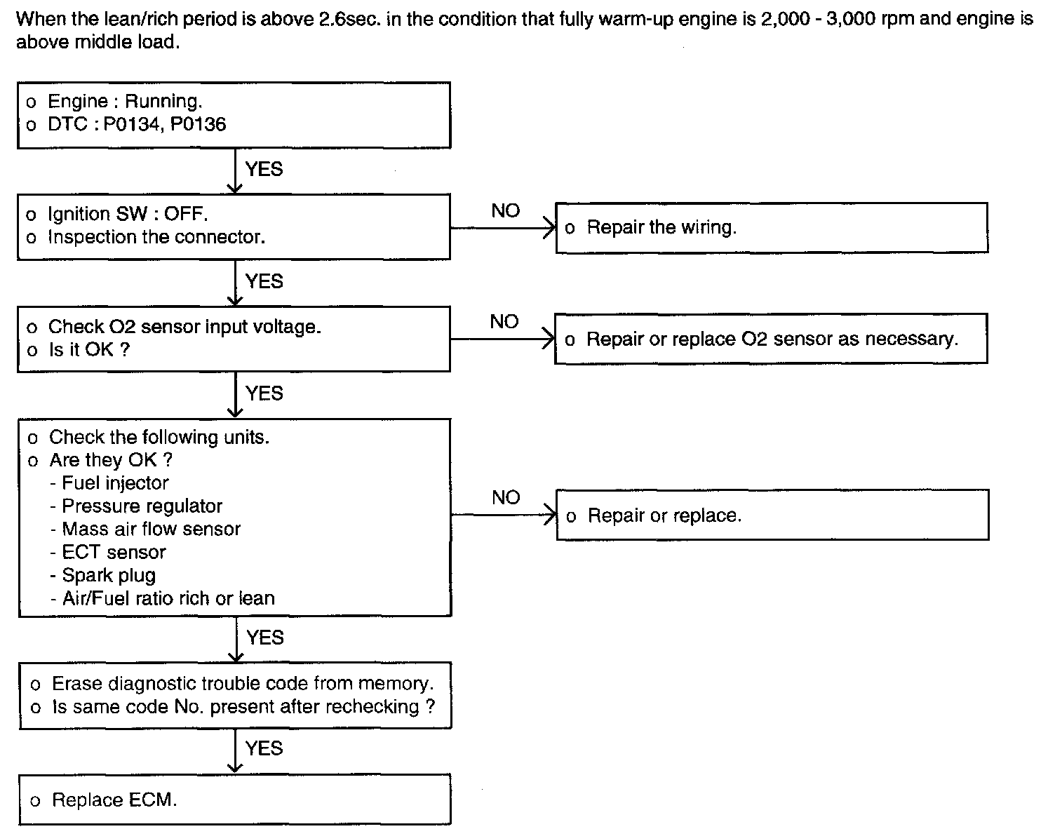 3. When O2 sensor output voltage is maintained as following for above 50 sec.