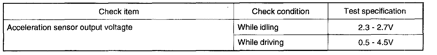 When abnormal output voltage occurs when stopped of vehicle or acceleration sensor is operated beyond normal operating zone.