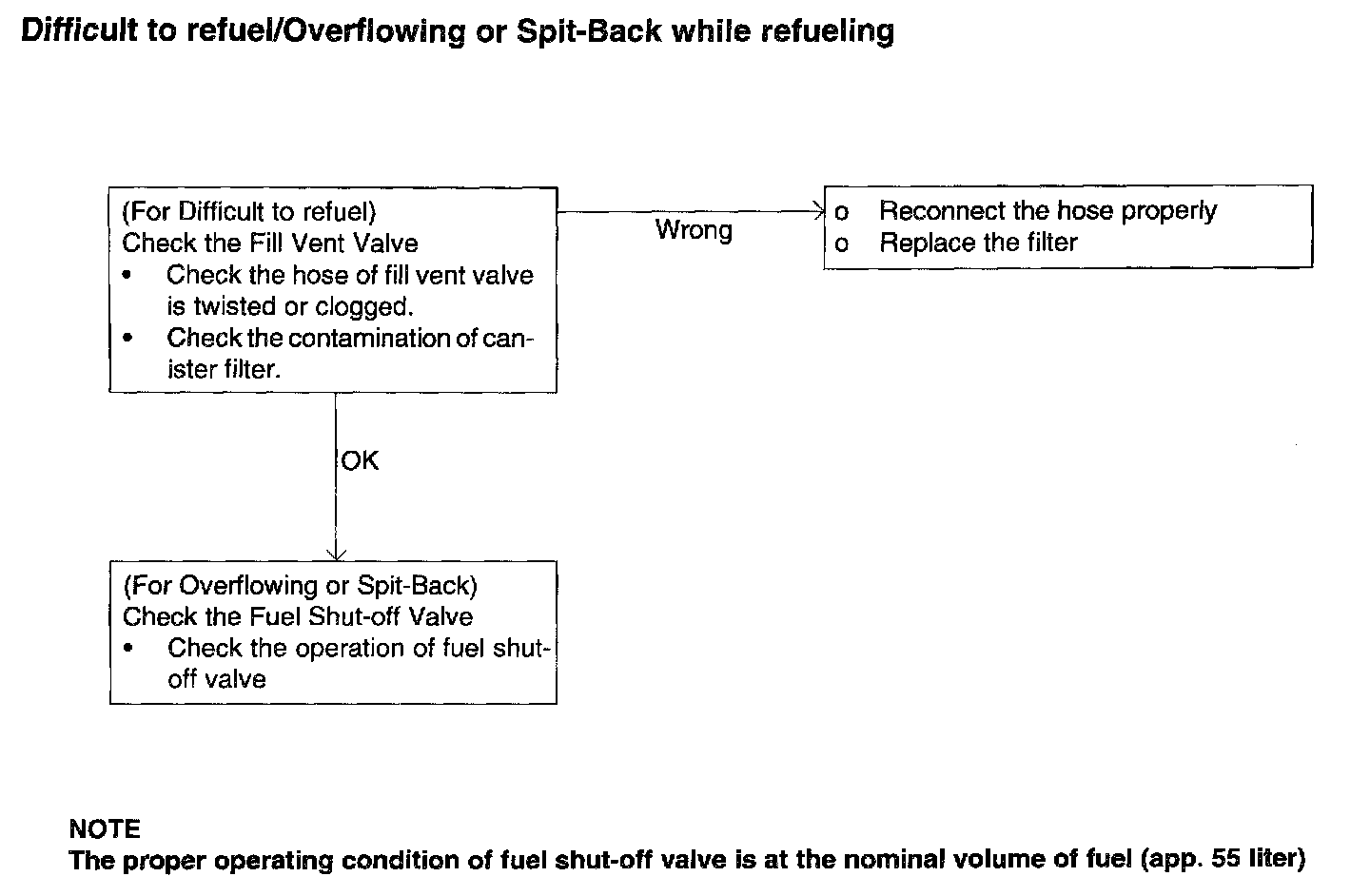 Difficult to Refuel/Overflowing or Spit-Back While Refueling