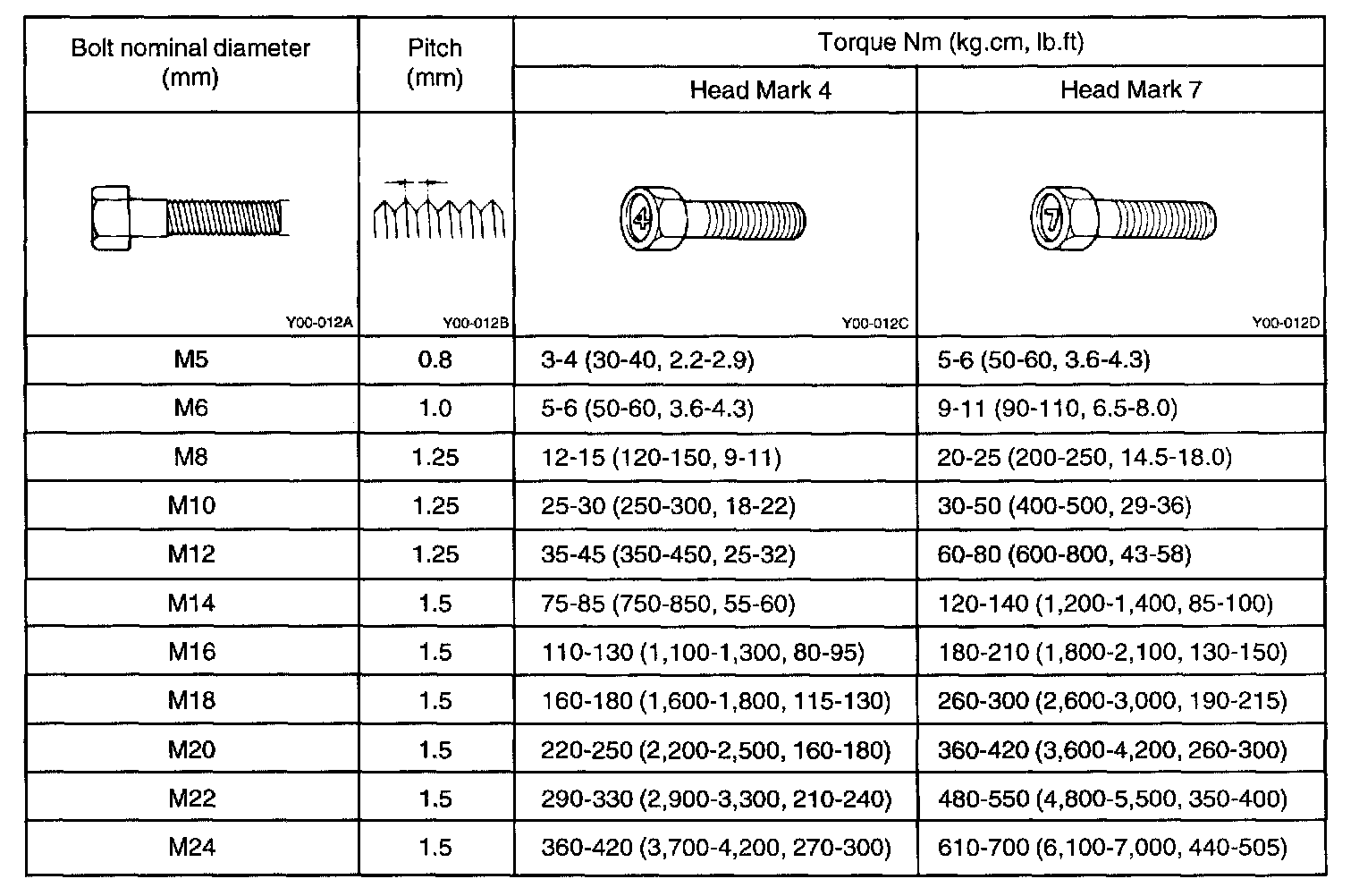 3. It should be standard practice to reduce the torques given in the table to the percentage indicated below: