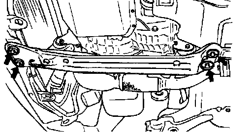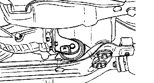 23. Remove the transaxle assembly lower mounting bolts with the transaxle assembly supported by a jack.