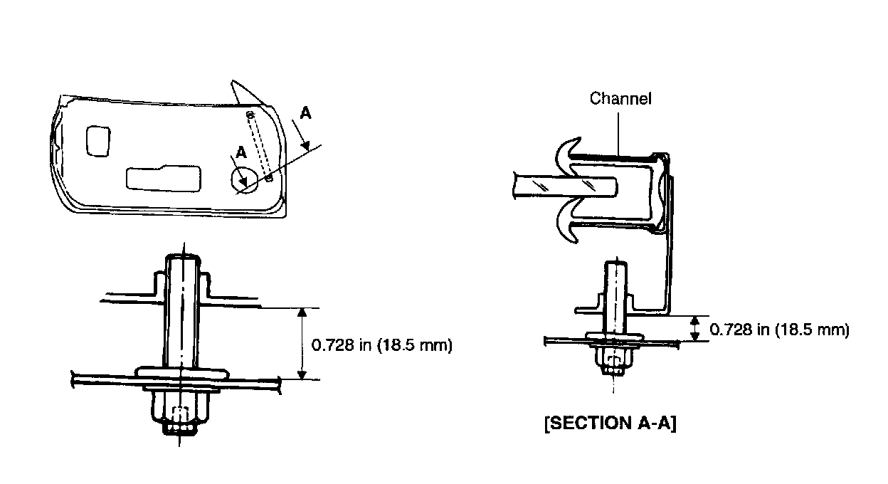 2. Adjust the channel by using the channel adjust bolt at the bottom of the channel (Distance between the channel and the door inner panel : 0.728 in (18.5 mm)