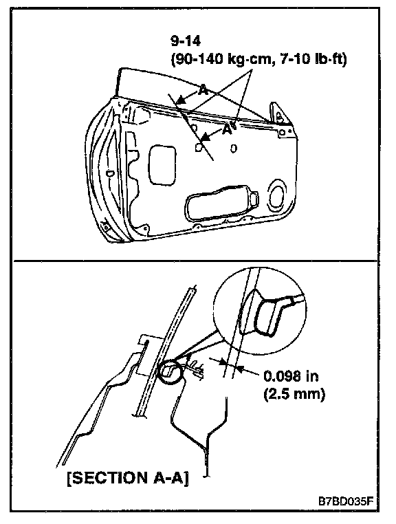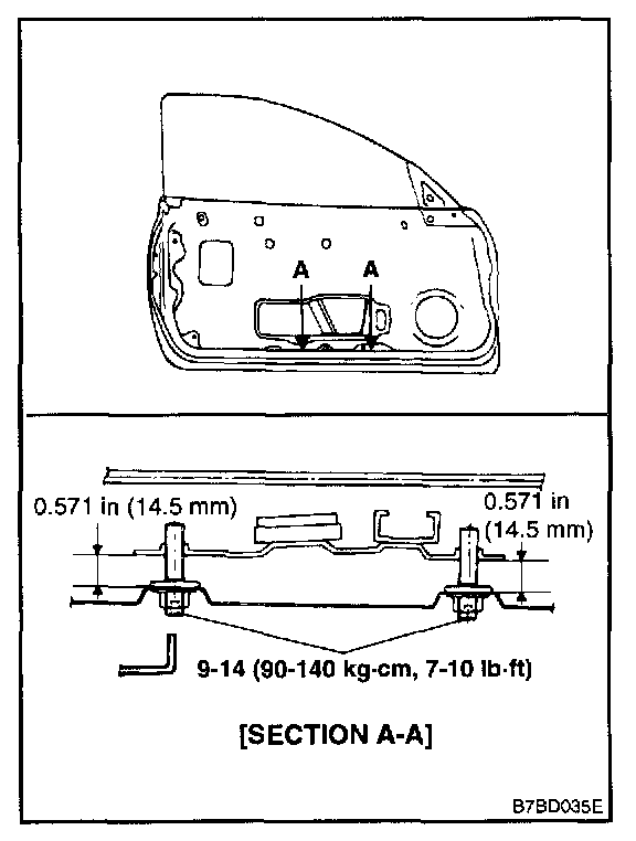3. Adjust the regulator by using regulator adjust boll at the bottom of the regulator (Distance between the channel and the door inner panel : 0.571 in (14.5 mm)