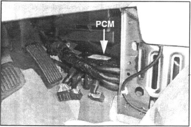 6. Disconnect the PCM connectors and remove the three PCM mounting nuts (10 mm socket).