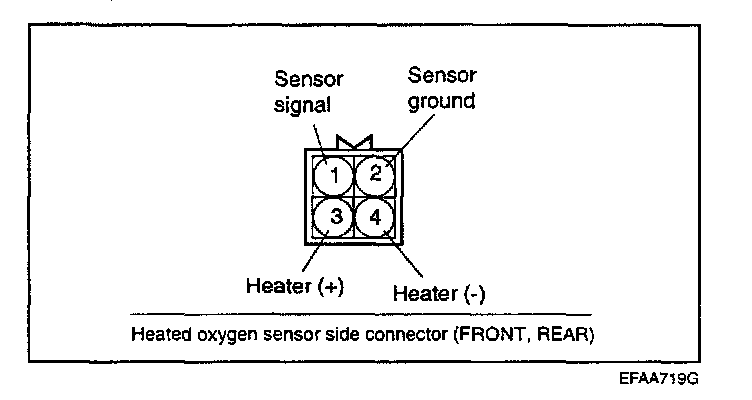 1. Disconnect the oxygen sensor connector, and measure the resistance between terminal 3 and terminal 4.
