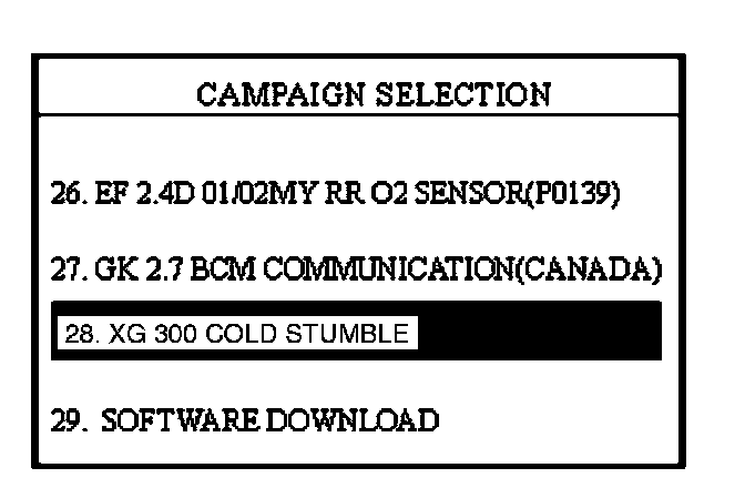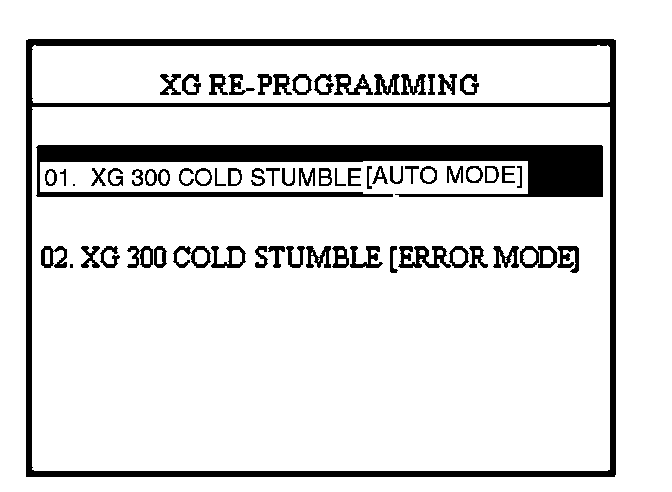 In the event that option "01. XG 300 COLD STUMBLE [AUTO MODE]" fails to download the new ECM program, option "02. XG 300 COLD STUMBLE [ERROR MODE]" must be used.