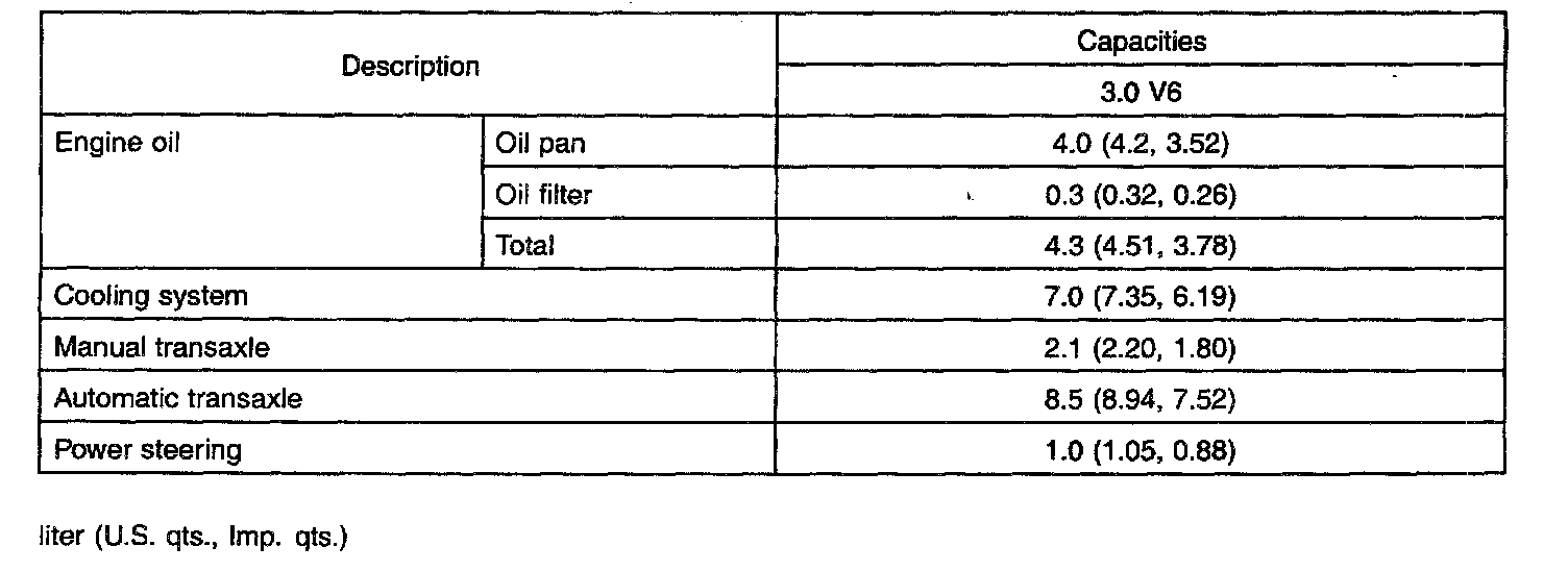 Lubricants Capacities:
