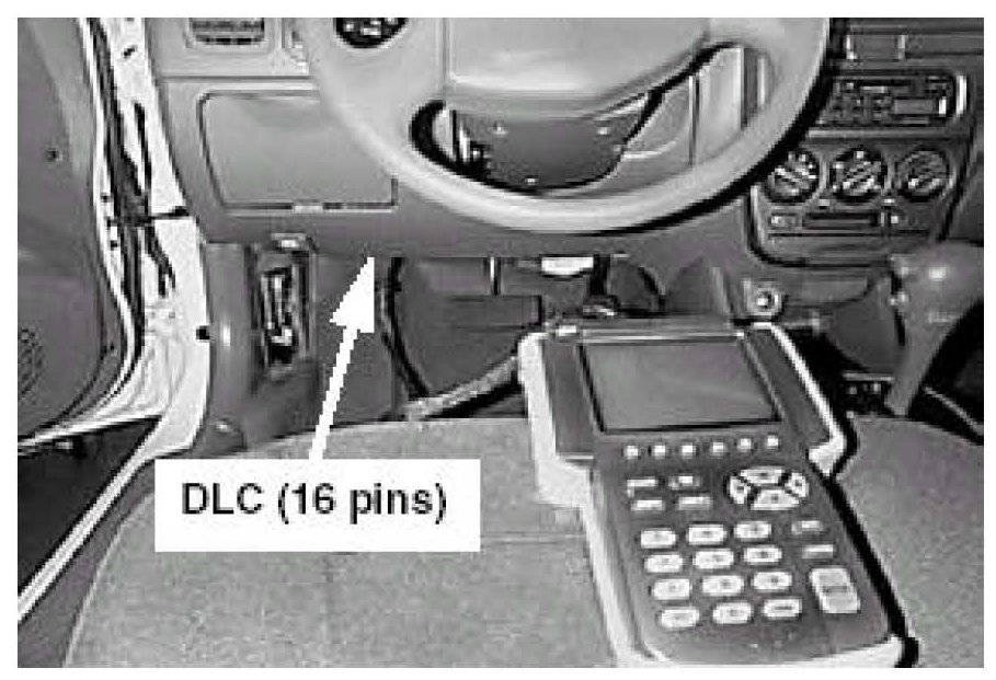 3. Plug the other end of the DLC cable into the 16-pin Data Link Connector located left of the steering wheel under the instrument panel.