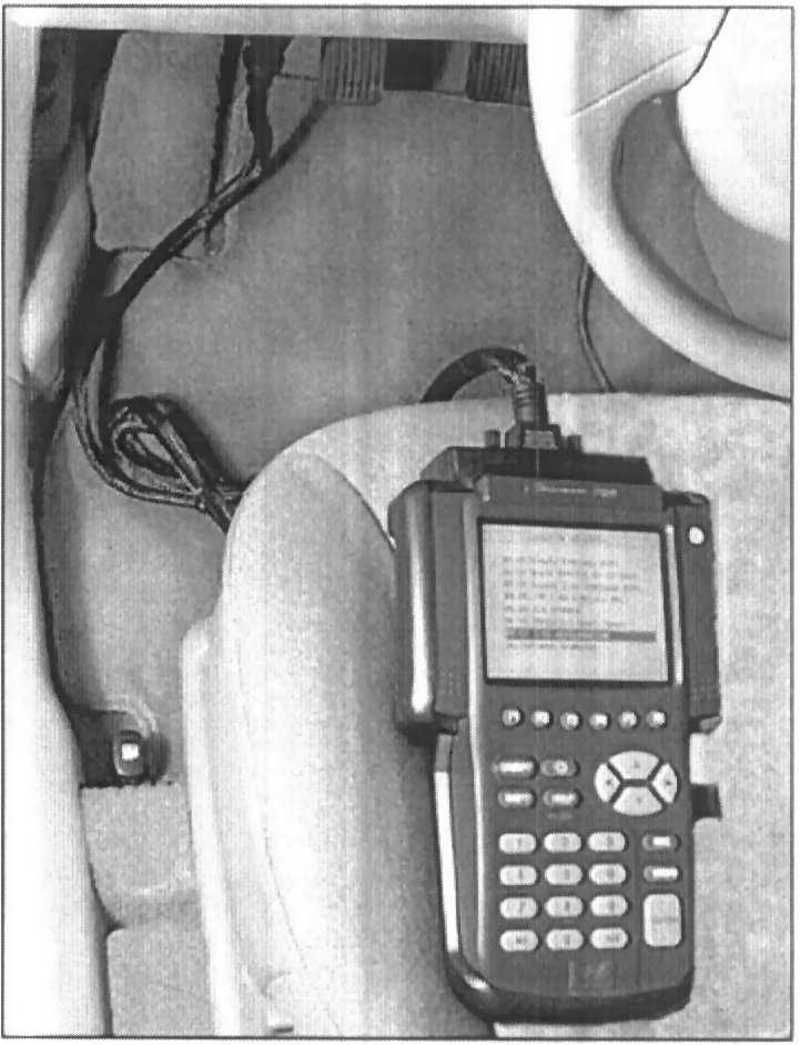 3. Plug the DLC cable from the Hi-Scan Pro into the data link connector (16-pin connector) to the left of the steering wheel under the instrument panel.