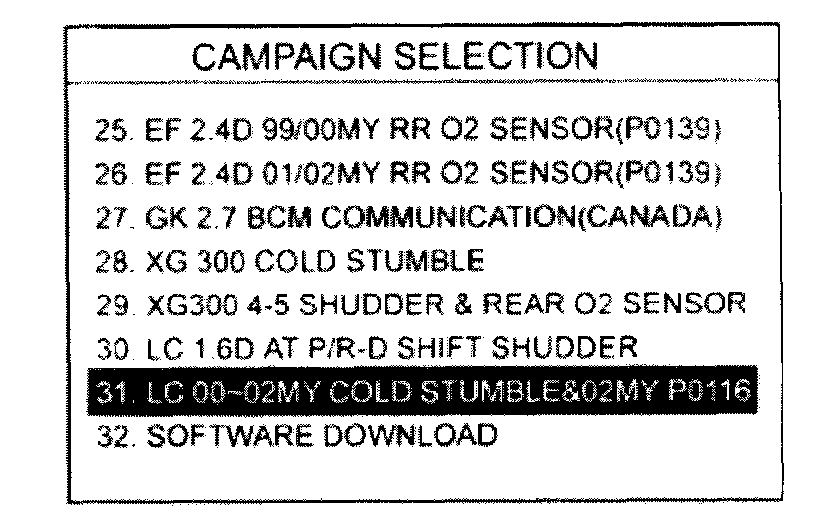 6. Select option "31. LC 00~02MYCOLD STUMBLE&02MY P0116" and press ENTER.