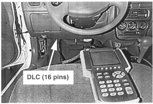 3. Plug the DLC cable from the Hi-Scan Pro into the Data Link Connector (16-pin connector) located left of the steering wheel under the instrument panel.