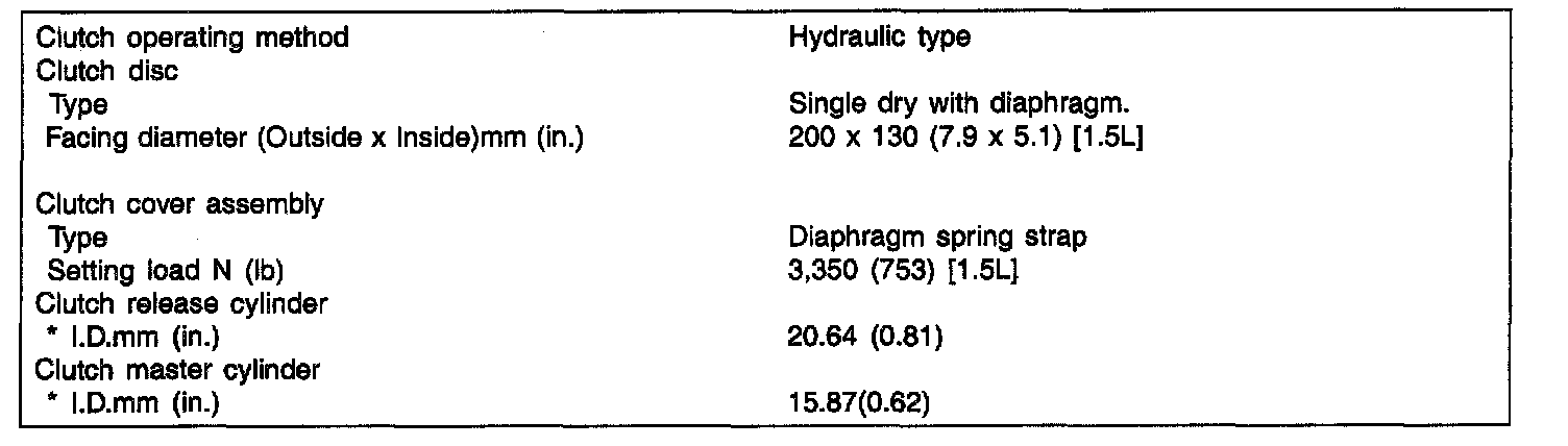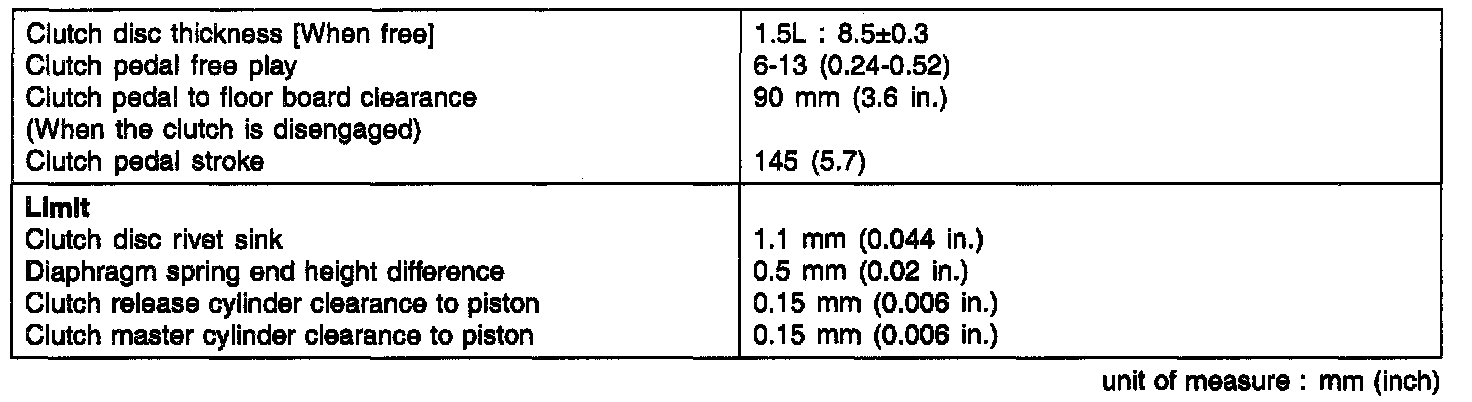 Clutch Disc Thickness [When Free] 1.5L: 8.5 +/- 0.3