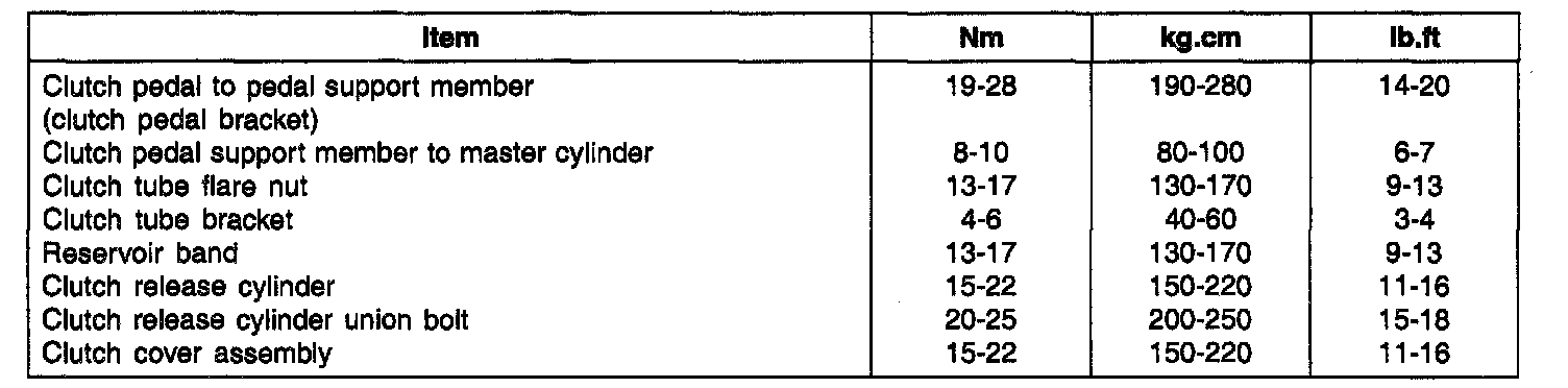Clutch Pedal Support Member To Master Cylinder 8 - 10 Nm (6 - 7 ft. lbs.)