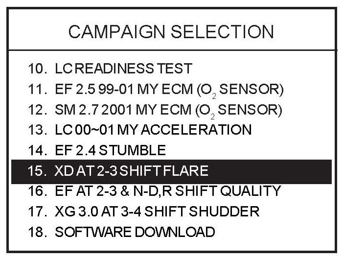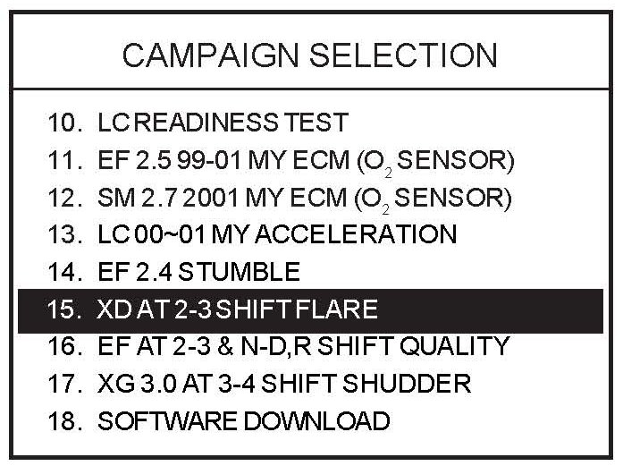 4. Select option "15. XD AT 2-3 SHIFT FLARE" and press "ENTER."