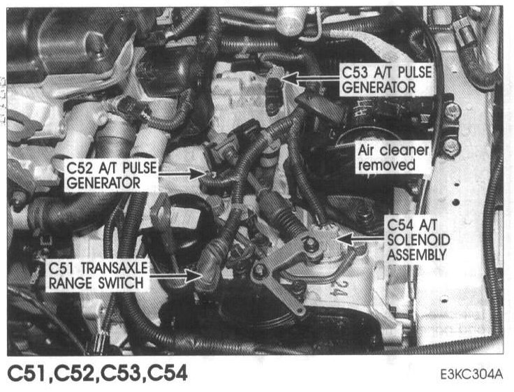 C51 Transaxle Range Switch, C52 "A", C53 "B" A/T Pulse Generator, C54 A/T Solenoid Assembly:
