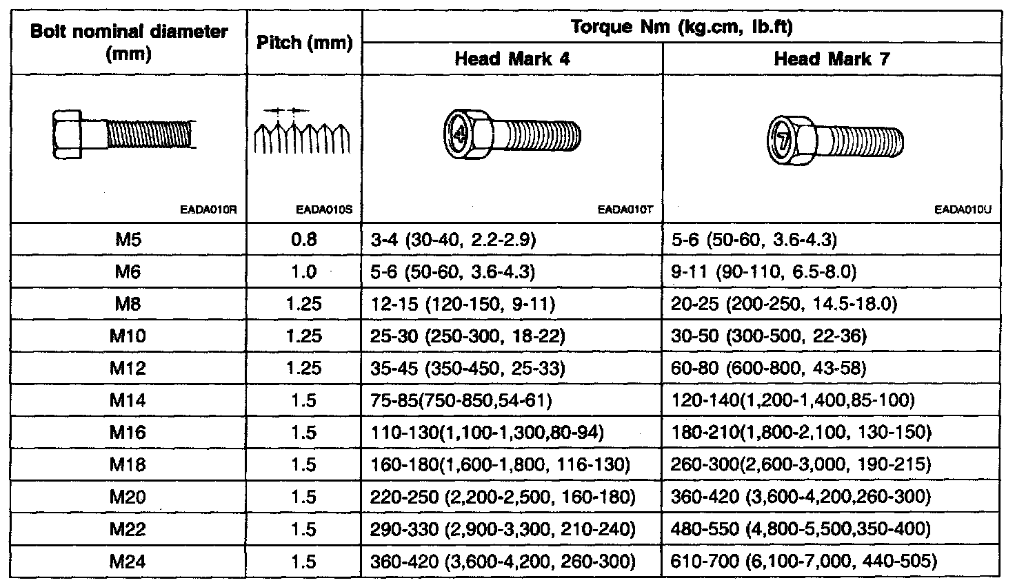 3. If you reduce the torques in the table to the percentage indicated below under the following conditions, if will be the standard value.