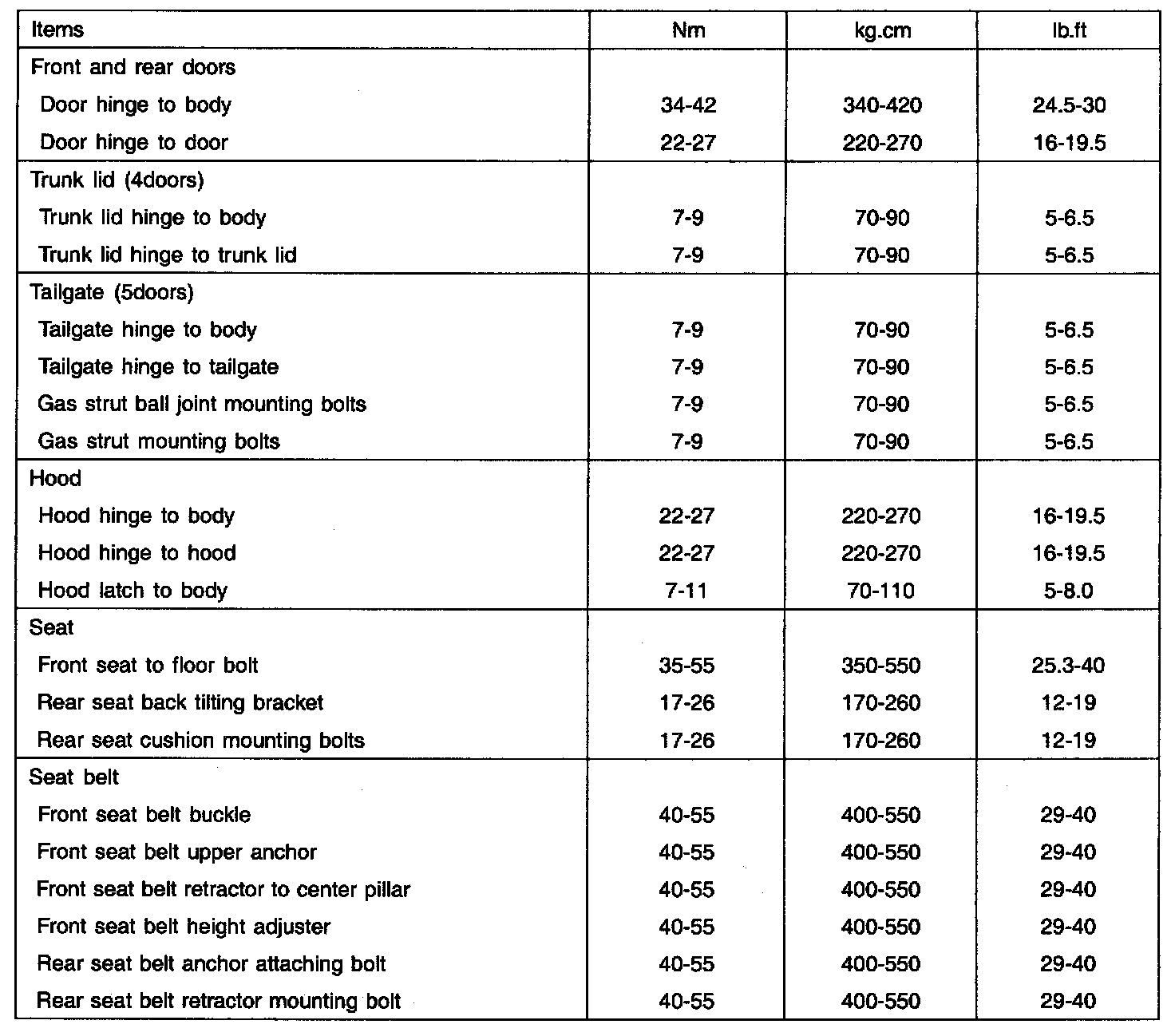 Tightening Torque: