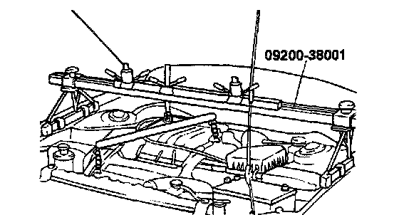 12. Attach the special tool, engine support fixture, (09200-38001) to the engine hooks.