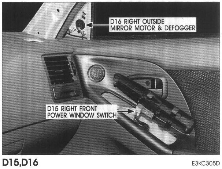 D15 Right Front Power Window Switch, D16 Right Outside Mirror Motor & Defogger: