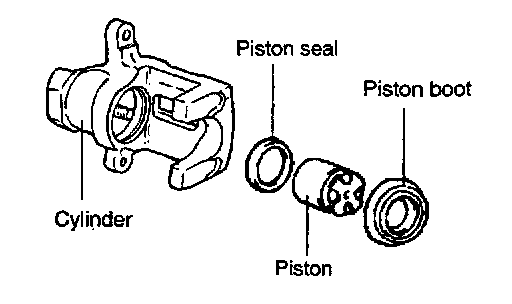 1. Check for worn, damaged, or rusted piston bore and piston. Replace the damaged parts if necessary.