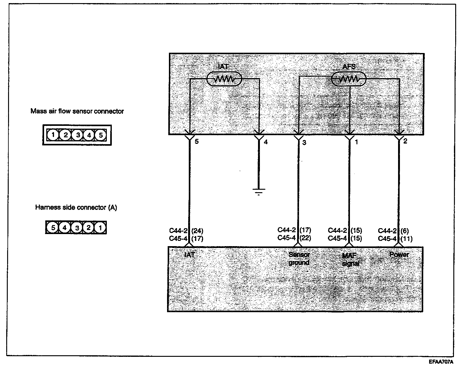 MASS AIR FLOW (MAF) SENSOR & INTAKE AIR TEMPERATURE (IAT) SENSORThis hot film type air flow sensor is composed of a hot film sensor, housing, metering duct (hybrid, sensor element).