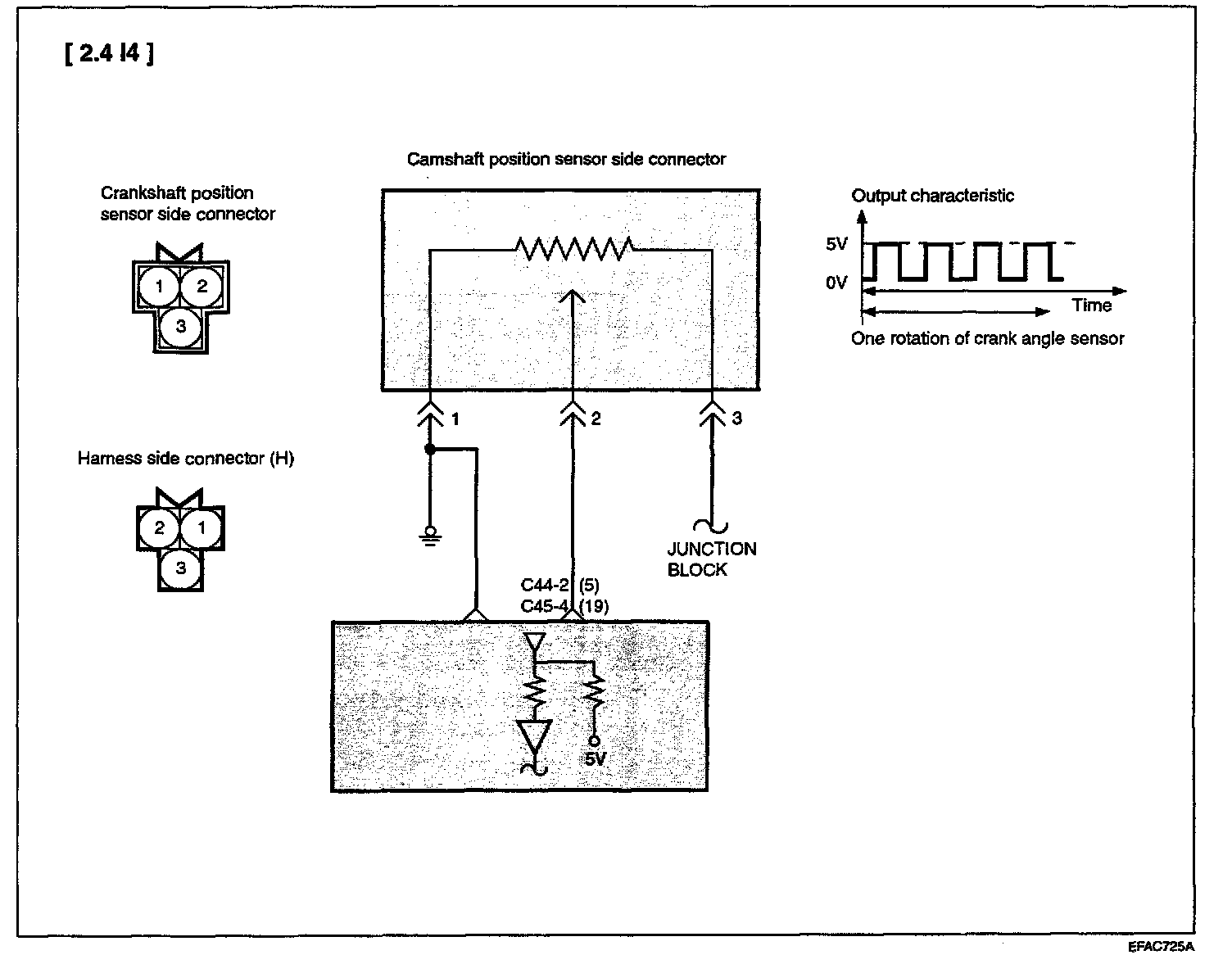 1. If unexpected shocks are felt during driving or the engine stalls suddenly, shake the crankshaft position sensor harness. If this causes the engine to stall, check for poor sensor connector contact.