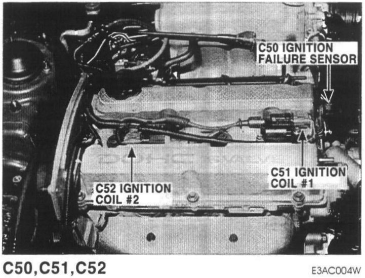 C50 Ignition Failure Sensor, C51 Ignition Coil #1, C52 Ignition Coil #2:
