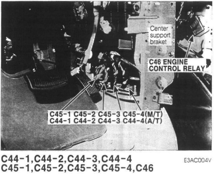 C44-1 PCM (M/T), C44-2 PCM (DOHC With M/T), C44-3 PCM (DOHC With M/T), C44-4 PCM (DOHC With M/T), C45-1 ECM (DOHC With M/T), C45-2 ECM (DOHC With M/T), C45-3 ECM (DOHC With M/T), C45-4 ECM (DOHC With M/T), C46 Engine Control Relay (DOHC):