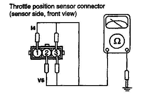 5. If the resistance is out of specification, or fails to change smoothly, replace the throttle position sensor.