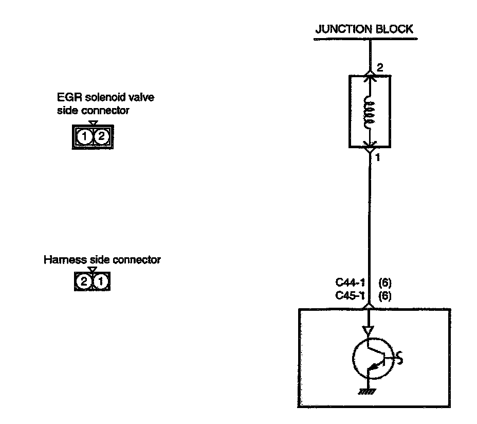 The EGR solenoid valve is a duty control type solenoid valve, which controls EGR valve operating negative pressure to the throttle body port.