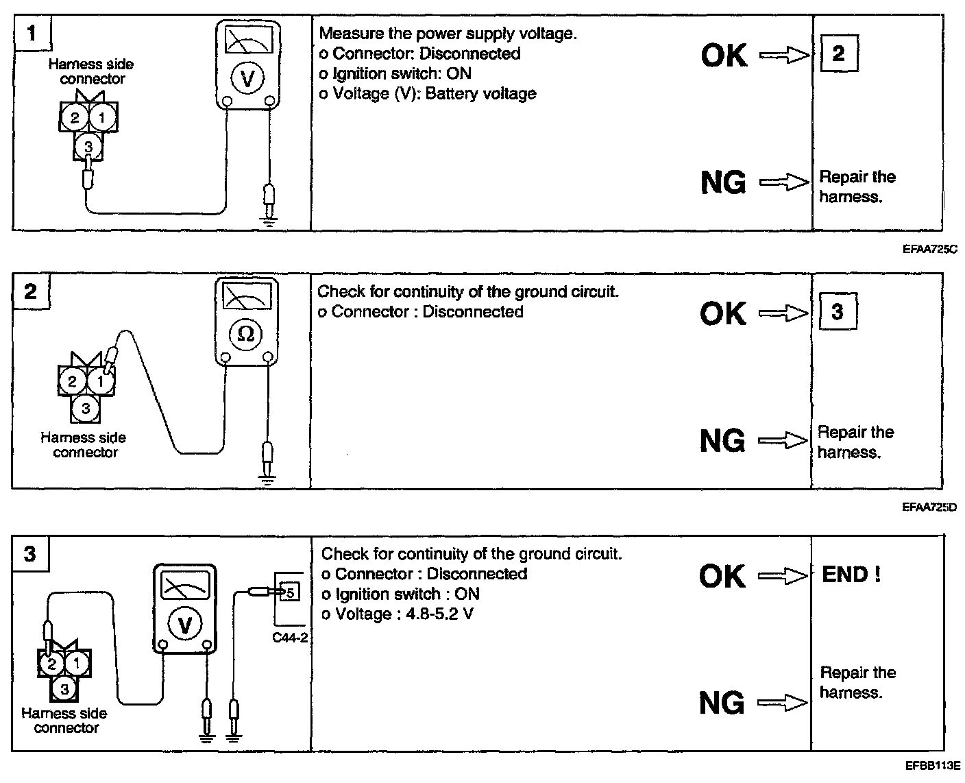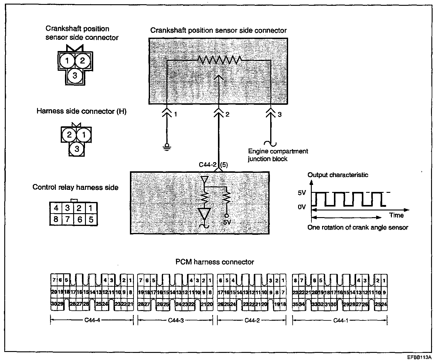 1. If unexpected shocks are felt during driving or the engine stalls suddenly, shake the crankshaft position sensor harness. If this causes the engine to stall, check for poor sensor connector contact.