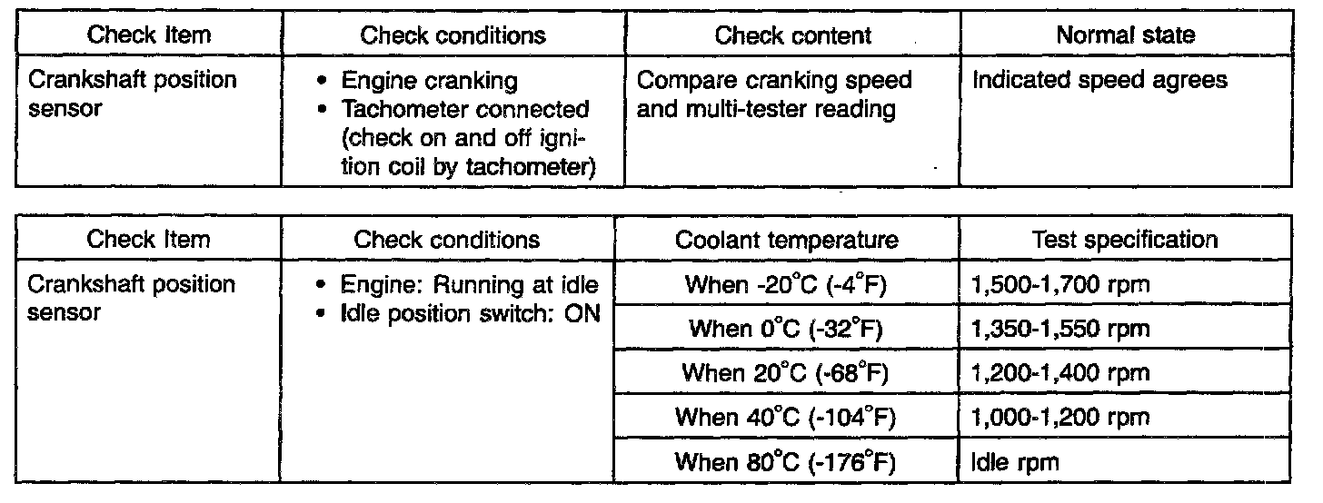 3. If the engine can be run at idle even if the crank angle sensor reading is out of specification, check the following: