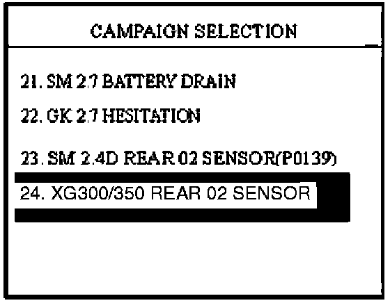 3. Select menu option "24. XG300/350 REAR 02 SENSOR" and press ENTER.