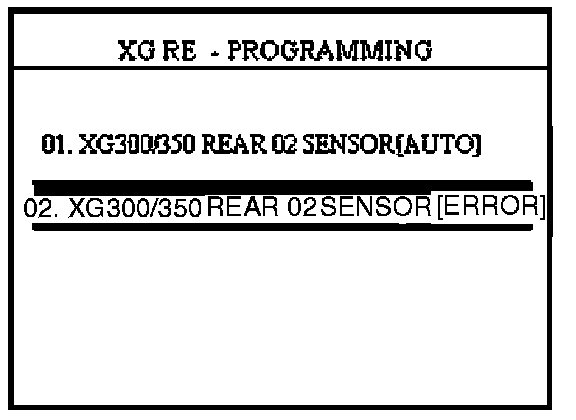 NOTE^ In the event menu option "01. XG300/350 REAR 02 SENSOR [AUTO]" fails to download the new ECM program, option "02. XG300/350 REAR 02 SENSOR [ERROR]" must be used.