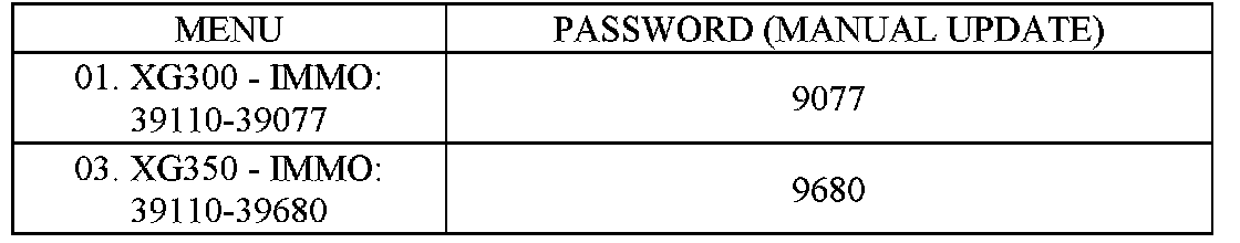 6. Enter the correct password for manual ECM reprogramming by referring to the table and press ENTER.
