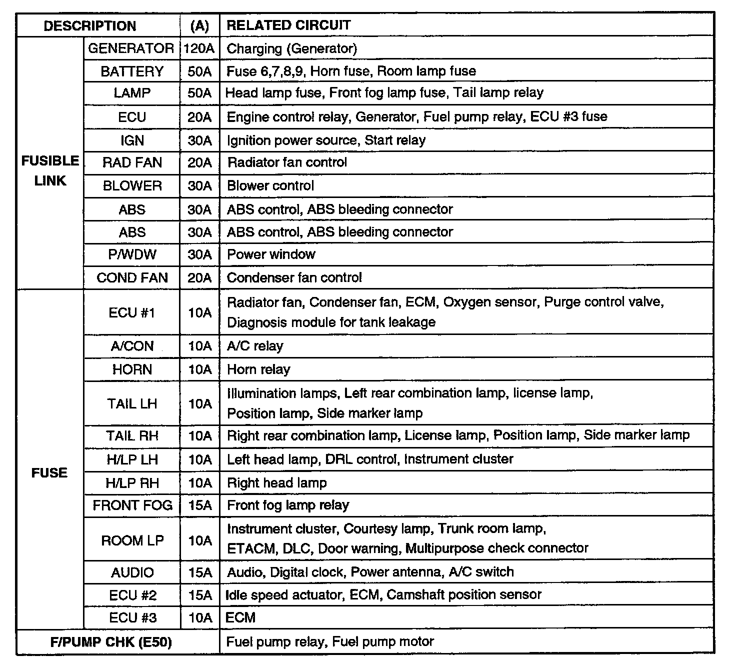 Engine Compartment Junction Block Circuit Details:
