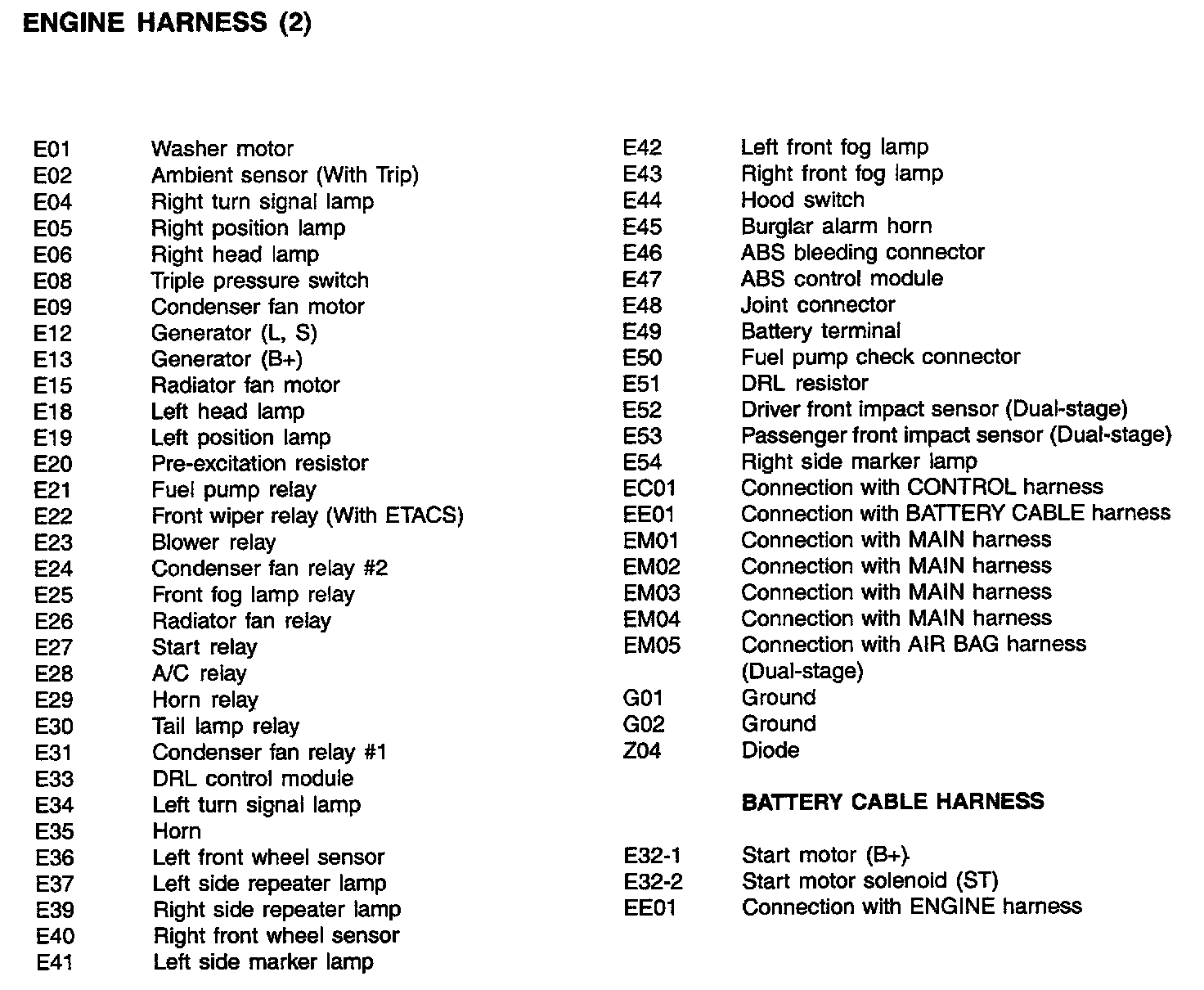 Engine Harness Index: