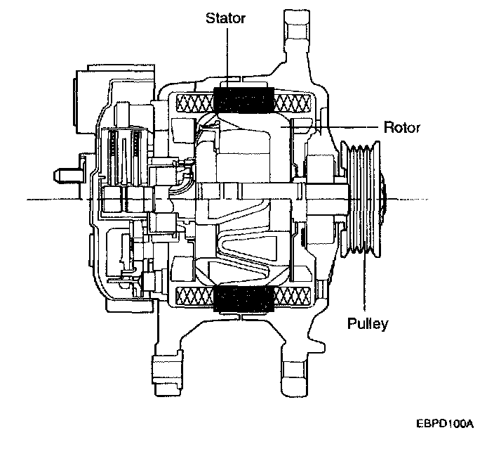 In addition, the charging voltage of the generator is regulated by the battery voltage detection system. The main components of the generator are the rotor, stator, rectifier, capacitor brushes, bearings and drive belt pulley. The brush holder contains a built-in electronic voltage regulator.