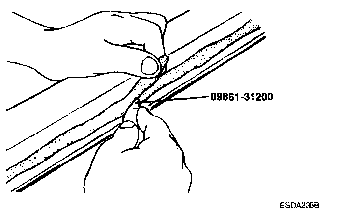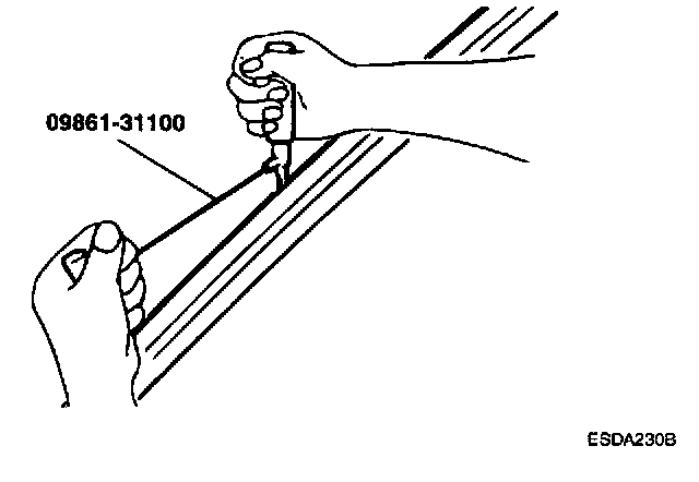 CAUTION: Be careful not to remove more adhesive than necessary, and also not to damage the paintwork on the body surface with the knife. If the paint work is damaged, repair the damaged area with touch-up paint.