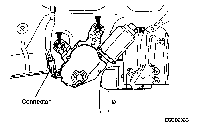 3. After loosening the rear wiper motor mounting bolts(2EA), remove the rear wiper motor.