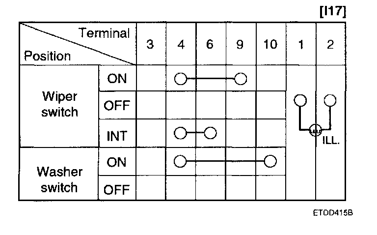 Windshield Washer Switch: Testing and Inspection