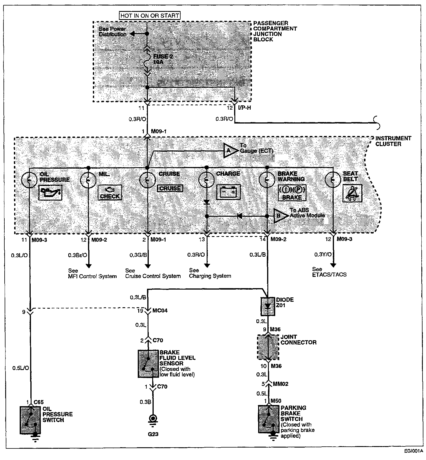 The starting point of each system section is the schematic diagram. These diagrams show how all the components work together, such as electrical current paths from power source to ground(via electrical load), switch connections at each position, and other related circuit functions.