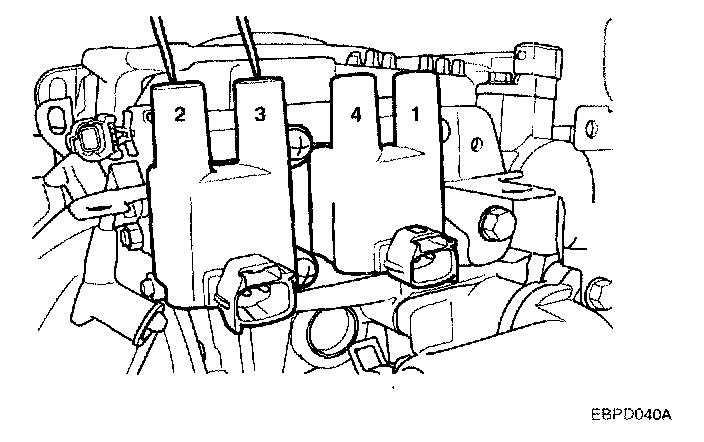 CHECKING IGNITION COILS1. Measure the primary coil resistance between terminals 1 and 2.