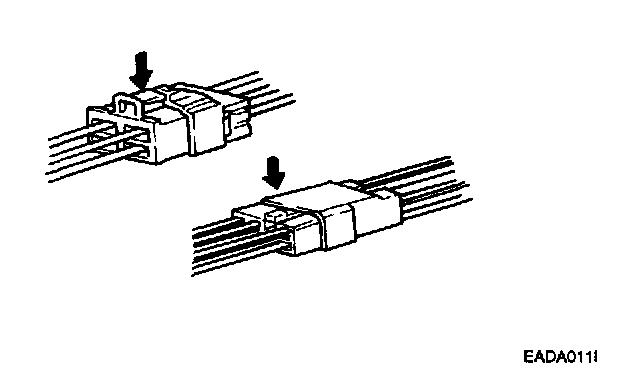 9. Disconnect connectors which have catches by pressing in the direction of the arrows shown the illustration.