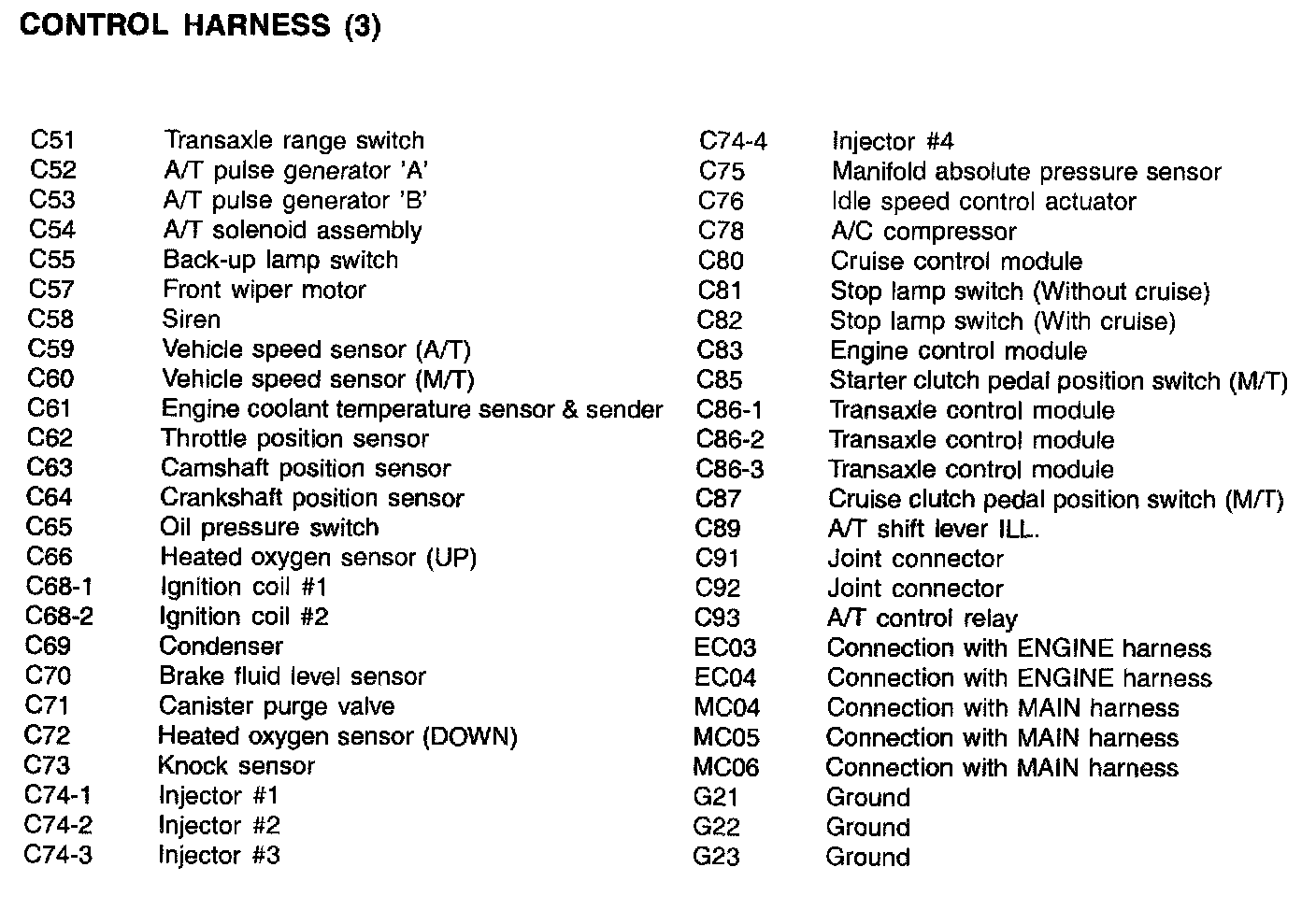 Control Harness Index: