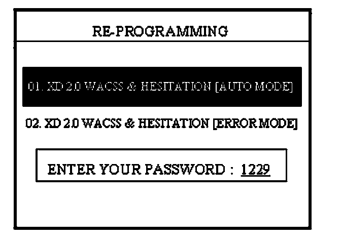 5. "REPROGRAM ERROR, PLEASE CHECK THE SYSTEM": In this case, you must reprogram manually after selecting the menu option "02. XD 2.0 WACSS & HESITATION [ERROR MODE]".