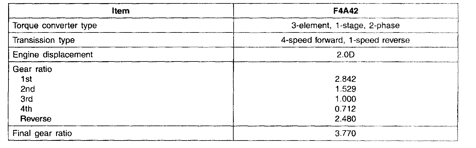 SPECIFICATIONS (A/T)