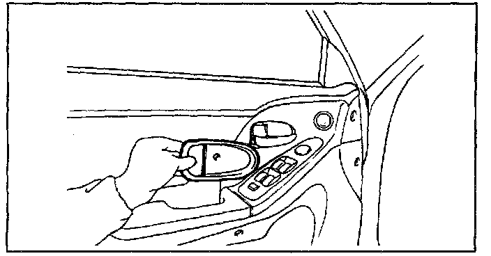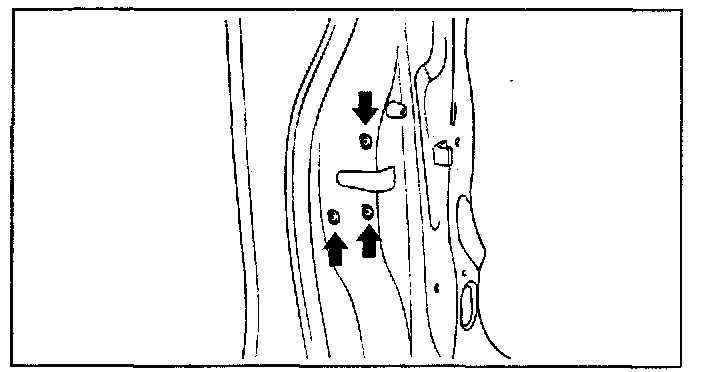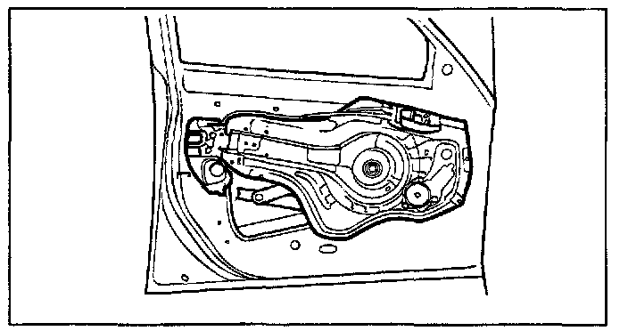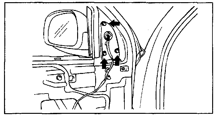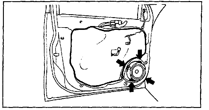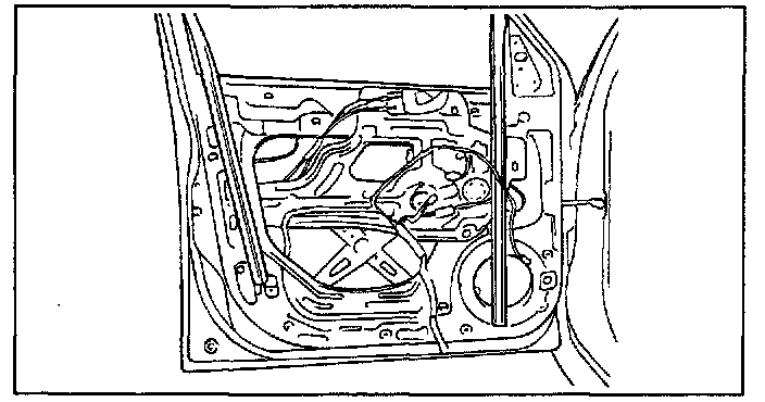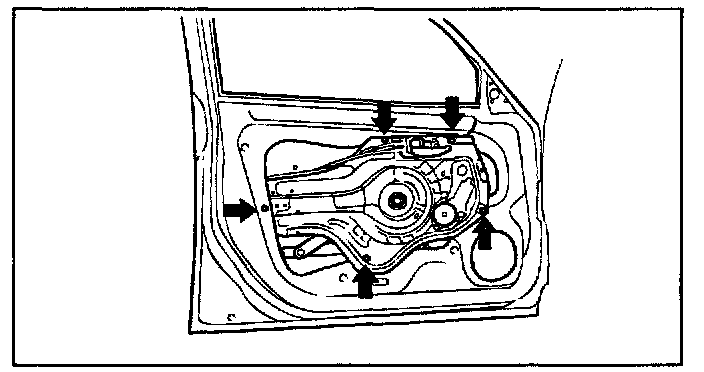 9. Remove the bolts holding the outside handle, the latch, and the door lock actuator.