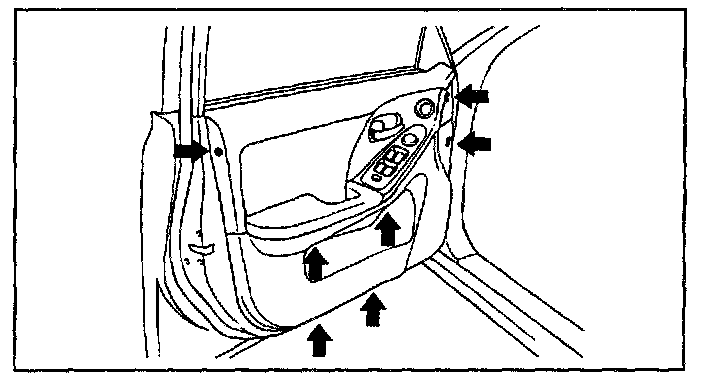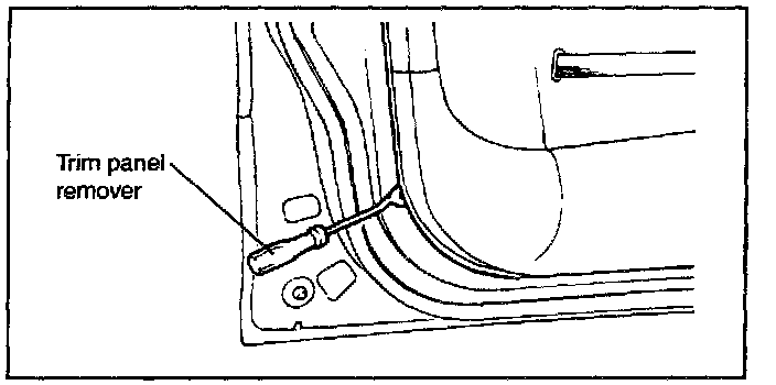 3. Insert a trim panel remover between the trim fasteners and the door trim panel to pry off.